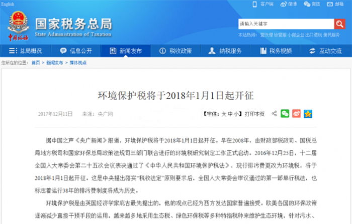 二、我國(guó)已經(jīng)從2018年1月1日起開征環(huán)保稅。
